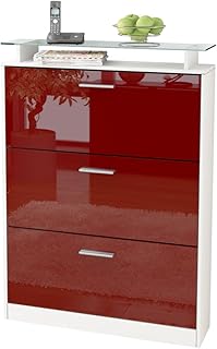 Vladon Meuble à Chaussures Lavia, Corps en Blanc Mat/Façades en Bordeaux Haute Brillance
