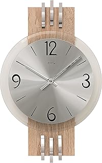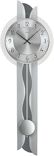 AMS 7216 Horloge murale moderne à quartz avec pendule en métal Argenté laqué