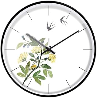 XYENJOY Horloge Murale Ronde, Horloge Florale Simple de Quartz de Cadre en métal, décoration Murale à la Maison, 30 * 30cm,Black1
