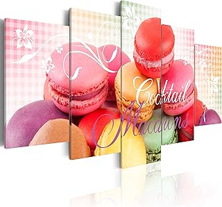 B&D XXL murando Impression sur Toile intissee 100x50 cm 5 Parties Tableau Tableaux Decoration Murale Photo Image Artistique Photographie Graphique Macarons Bonbons j-A-0049-b-o