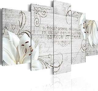B&D XXL murando Impression sur Toile intissee 100x50 cm 5 Parties Tableau Tableaux Decoration Murale Photo Image Artistique Photographie Graphique Fleurs Lys b-A-0329-b-p