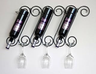 Porte-bouteilles de vin mural en métal | Porte-verre à vin suspendu | Porte-bouteille de vin Vintage | Meuble à vin mural rustique à vin | Support de rangement pour étagère murale (noir)