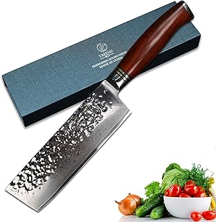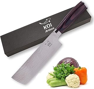 KOI ARTISAN Nakiri Couteau de cuisine – 17,8 cm – Couteau de chef traditionnel japonais – Acier inoxydable à haute teneur en carbone – Couteaux de chef professionnels – Résistant aux taches
