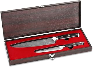 Sunnecko Set Couteau Cuisine Couteaux Damas 2 Pièces- 20cm Couteau de Chef + Couteau Tout Usage Set Couteaux Japonais Lame en Acier Damas 73 Plis VG-10 Fourré &Poignée G10 -Série Classic
