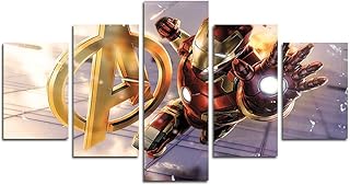 Leyruk 5 Pièce Iron Man Marvel Vengeurs Super Âge Super Âge Toile Peinture pour Salon décor à la Maison Toile Art Mur Affiche (No Frame) sans Cadre HF043 Size:50 inch x30 inch