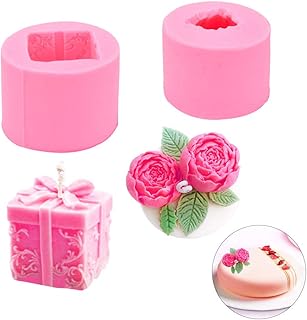 QLWNWQAD 2 pièces moules à Bougie en Silicone 3D Rose Bougie Moule et boîte Cadeau Moule en Cire Moule à Savon Maison Bricolage Artisanat Fleur Bougie moules pour décoration de gâteau Mariage (Rose)