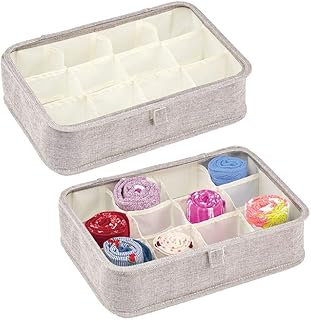 mDesign (Lot de 2 boîte Rangement Enfant à Couvercle – boîte Rangement Jouet à 12 Compartiments pour Linge, Accessoires et Bijoux – casier de Rangement Pliable en Fibre synthétique Respirante – Gris