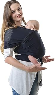 LAT Porte-Bébés Ventraux Ergonomique Écharpe d'Allaitement Portage Multifonctionnel Réglable en 100% Coton pour Bébés Enfants Nouveau-nés Nourrissons de 3-6 Mois(Bleu foncé)