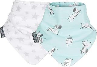 Bavoirs imprimés pour bébés et Enfants en Bas âge - Pack de 2 - Bavoir en Mousseline de Coton Biologique - Conçus par Cheeky Chompers (Silver Stars and Zebra Dreams)