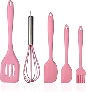 Ensemble d'ustensiles de cuisine en silicone Sipliv 5pcs - spatules de cuisine antiadhésives brosse ustensiles de cuisine ensemble d'ustensiles de cuisine maison, rose