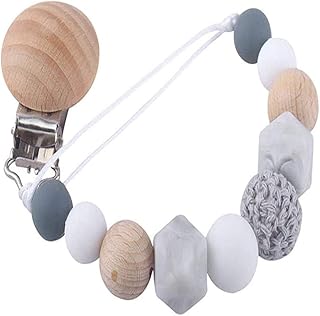 RUBY 16pcs Pince Attache Tetine,Attache TéTine Bois Naturel Personnalisée,Accroche Tetine Bebe,Clip Attache Tetine,MatéRiel Attache Sucette En Bois (Blanc Gris, 16 PCS)