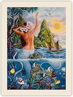 Sirène De Hawaii Ancienne - Peinture de Couleur de Warren Rapozo - Toile Organique Impression d'art 61x81cm