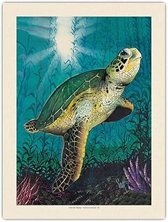 Tortue de mer Verte hawaïenne - Peinture de Couleur de Scott Westmoreland - Toile Organique Impression d'art 61x81cm