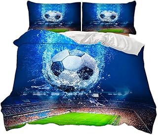Meiju 3D Ensemble de literie Housse de Couette, 3 pièces Trois Microfibre Moderne Parure de lit de Amateur Couette et Taies d'oreiller (220x240cm,Football de l'eau)
