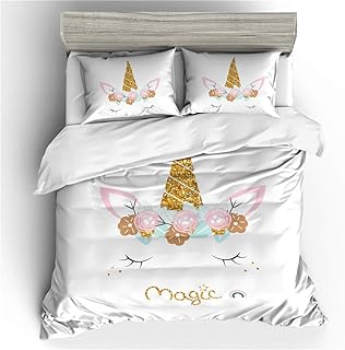 EU-VV Ensemble De Literie Housse De Couette en Microfibre 3D Licorne Smiley Enfants Jeune Garçon Et Fille 1 Housse De Couette + 2 Taies d'oreiller 50X75cm (Calme,220x240cm(1.8M/2MBed))