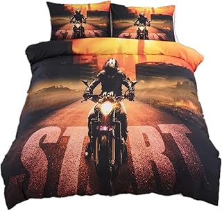 Odot 3D Ensemble de literie Housse de Couette, Literie 3 pièces Parure de lit Microfibre de Housses de Couette Amateur Couette et Taies d'oreiller (220x240cm,Moto)