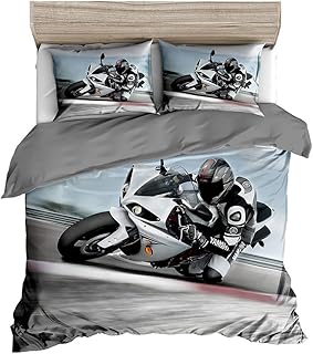 Meiju 3D Ensemble de literie Housse de Couette, 2/3 pièces Trois Microfibre Moderne Parure de lit de Amateur Couette et Taies d'oreiller (3pcs-220x240cm,Moto)