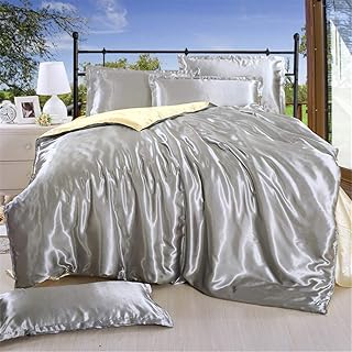 Odot Ensemble de literie Housse de Couette, literie 4 pièces Soie Unie Drap Plat Parure de lit Microfibre de Amateur Couette et Taies d'oreiller (220x240cm,Chameau Gris argenté)