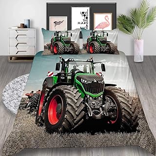 Bxnthd Ensemble de literie 3 pièces Ensemble de Housse de Couette avec Impressions 3D 1 Housse de Couette 2 taies d'oreiller pour Enfants et Adolescents(Tracteur Vert - ) 220 x 240 cm, Literie pour e