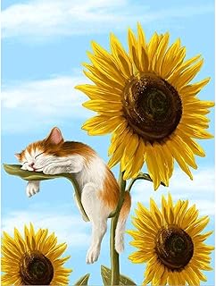 Peinture en Diamant 5D DIY,diamond painting,broderie diamant enfant,point de croix, Chat tournesol artisanal sur tissu en toile idéal pour la décoration à la maison/salon/chambre/bureau 35x 45cm