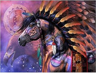 Peinture Diamant Adulte 5D DIY Chevaux indiens diamond painting broderie diamant enfant strass point de croix artisanal sur tissu en toile idéal pour la décoration à la maison salon chambre bureau