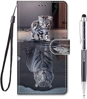 Grandoin Coque pour Redmi 9A, Mode Créatif Effet 3D Modèle Désign Étui de Protection Housse en PU Cuir avec TPU Silicone Souple Phone Case pour Xiaomi Redmi 9A (Chat Tigre)